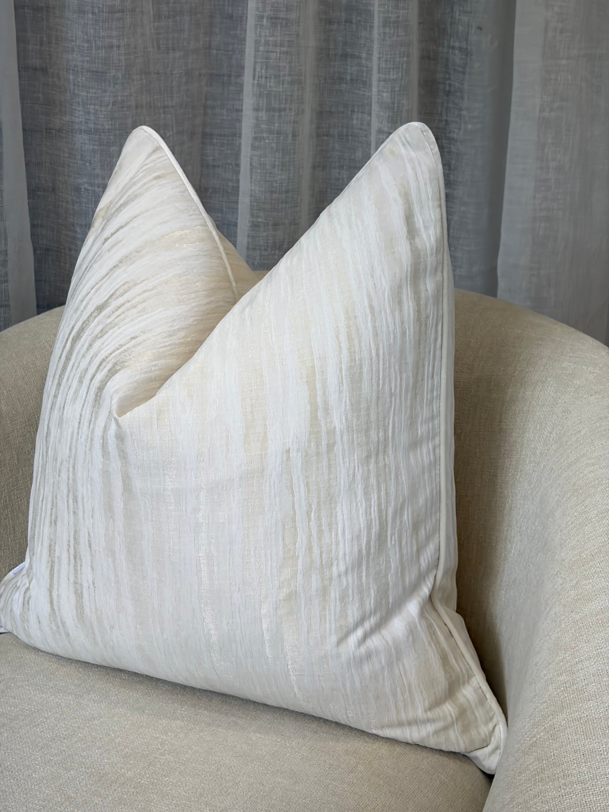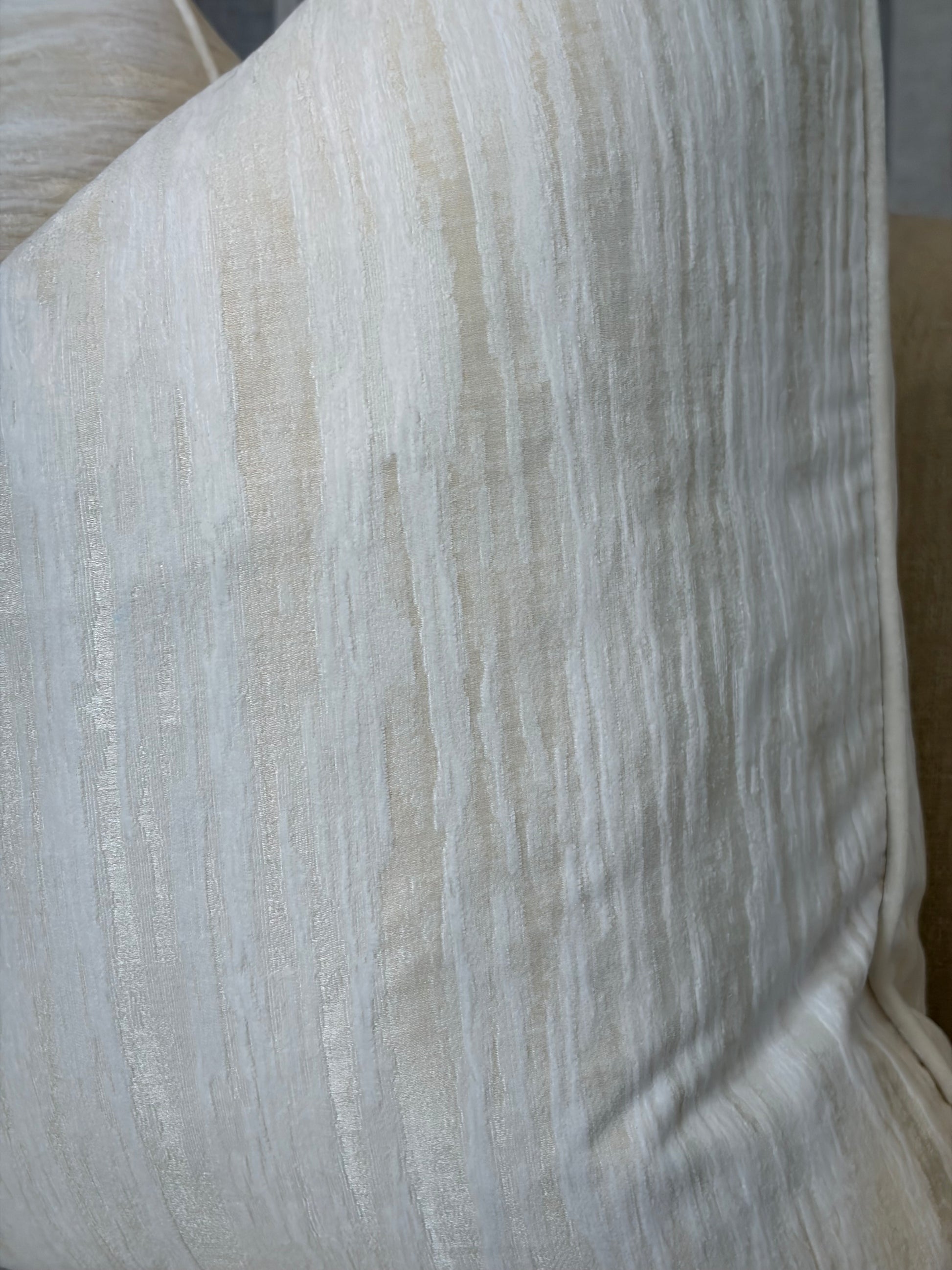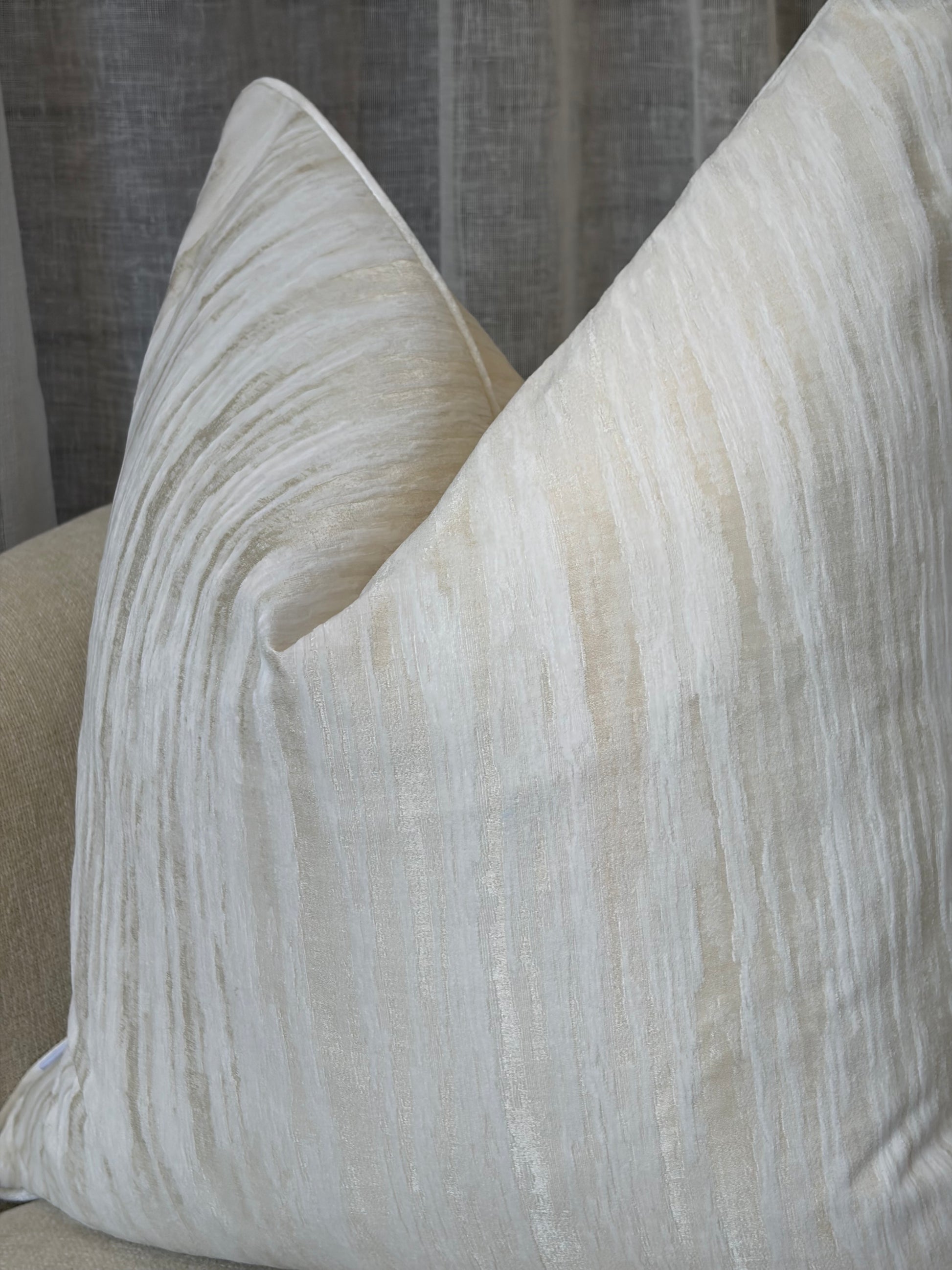 Elevate your living space with Alora's luxurious ivory and cream striped cushion, measuring 55x55cm. The sophisticated design and premium materials effortlessly add elegance and comfort to any room. Embrace the exclusivity of Alora's unique style and transform your home into a work of art.