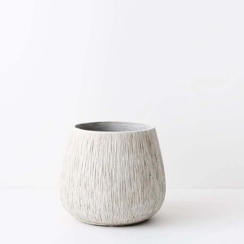 The Elias Pot boasts an impressive size and intricate pattern, making it ideal for outdoor use. Available in sizes that accommodate everything from small to large plants, it offers both functionality and visual appeal.